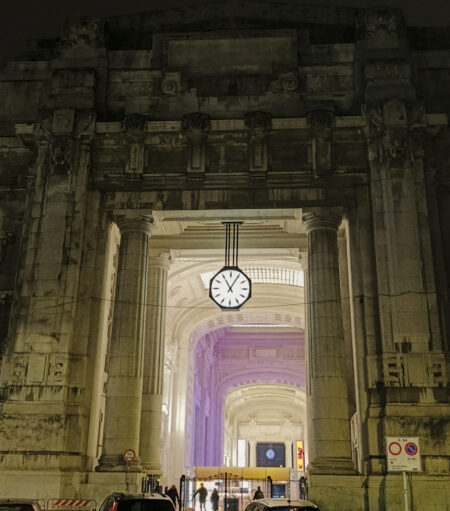 Fine 2009, ultime foto per chiudere il libro. Gli allestimenti di LED Festival erano all’apice e il mio libro, o meglio gli orologi cui era dedicato, era collegato ad una delle tante installazioni cittadine allestite dalla kermesse. In queste circostanze sono stati restaurati i due grandi orologi che campeggiano sugli ingressi sella Galleria delle Carrozze di Stazione Centrale.